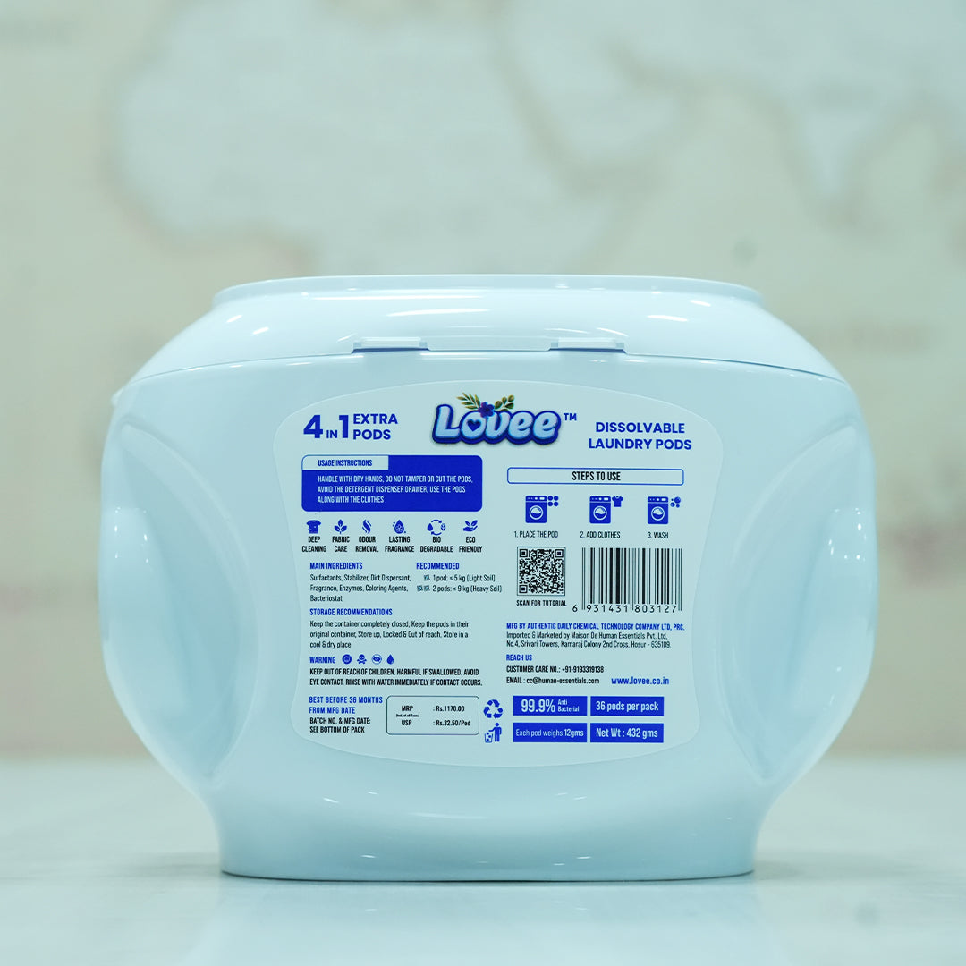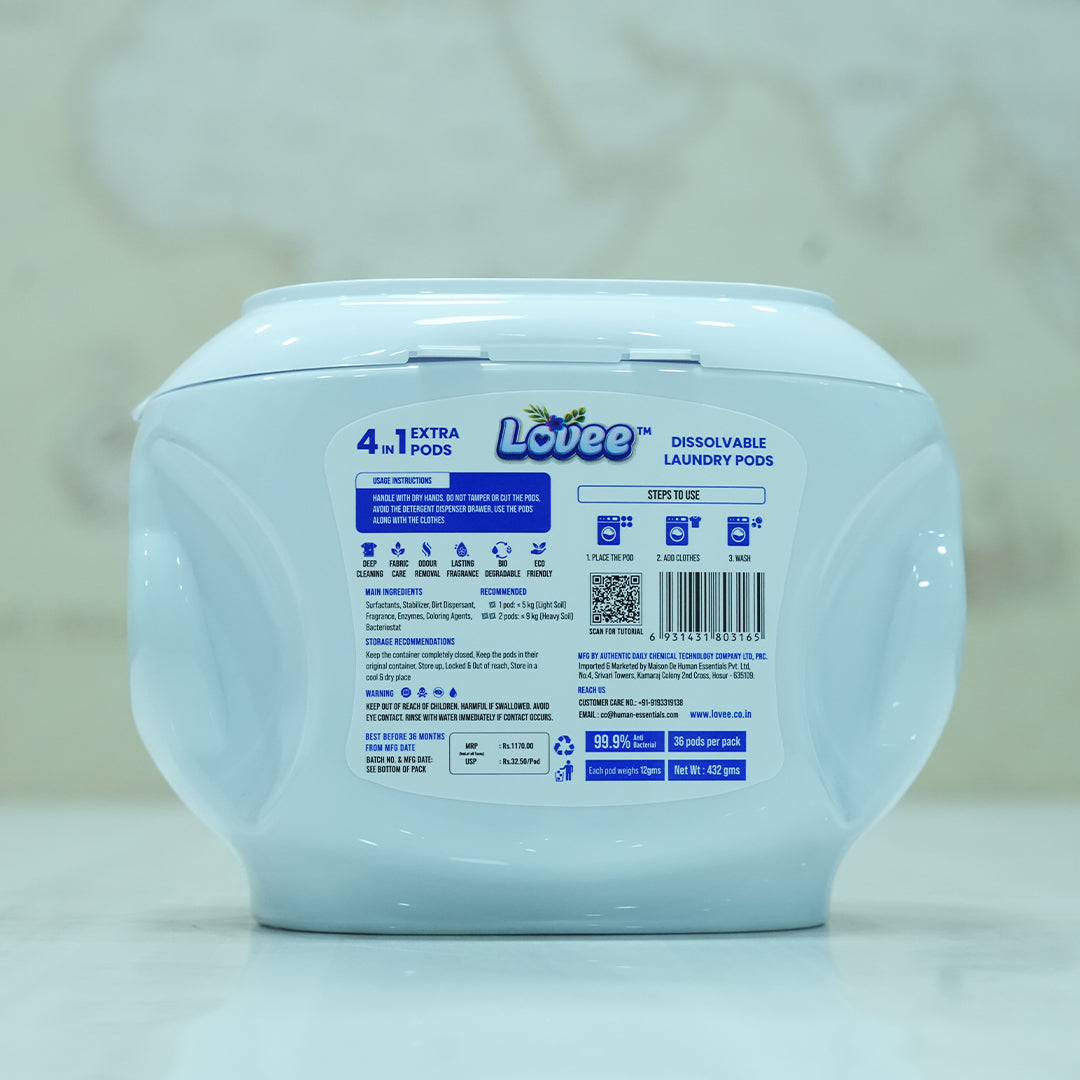 Make laundry effortless with Lovee Dissolvable Laundry Pods, engineered for powerful cleaning performance and long-lasting freshness. Each pod delivers 9× stronger cleaning power, dissolves instantly in both hot and cold water, and leaves no residue behind. Safe for all fabrics and compatible with all washing machines, Lovee Pods provide a mess-free, pre-measured washing experience - just toss, wash, and enjoy spotless softness every time. Perfect for homes, hostels, travel, and everyday laundry needs - clean smarter, not harder.