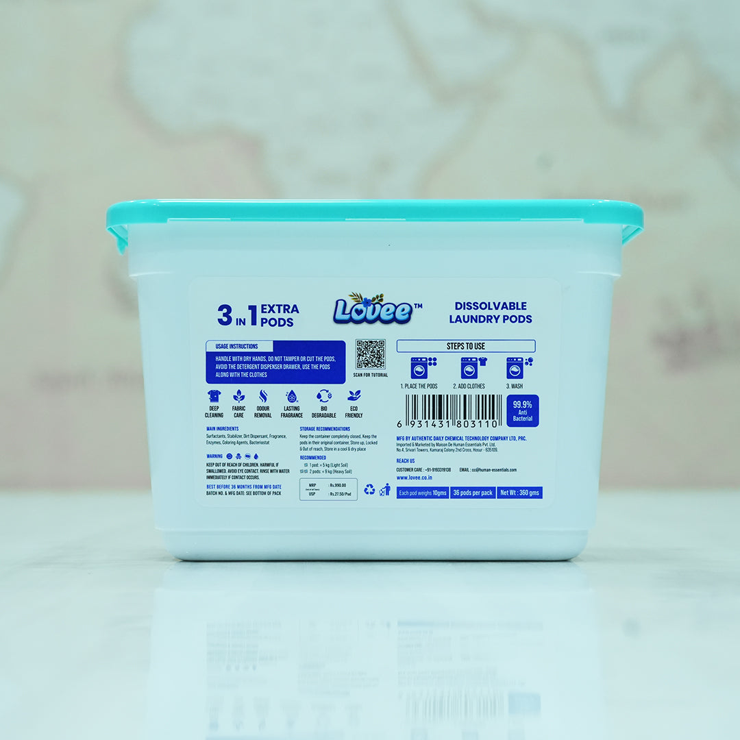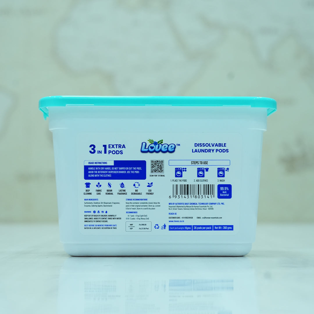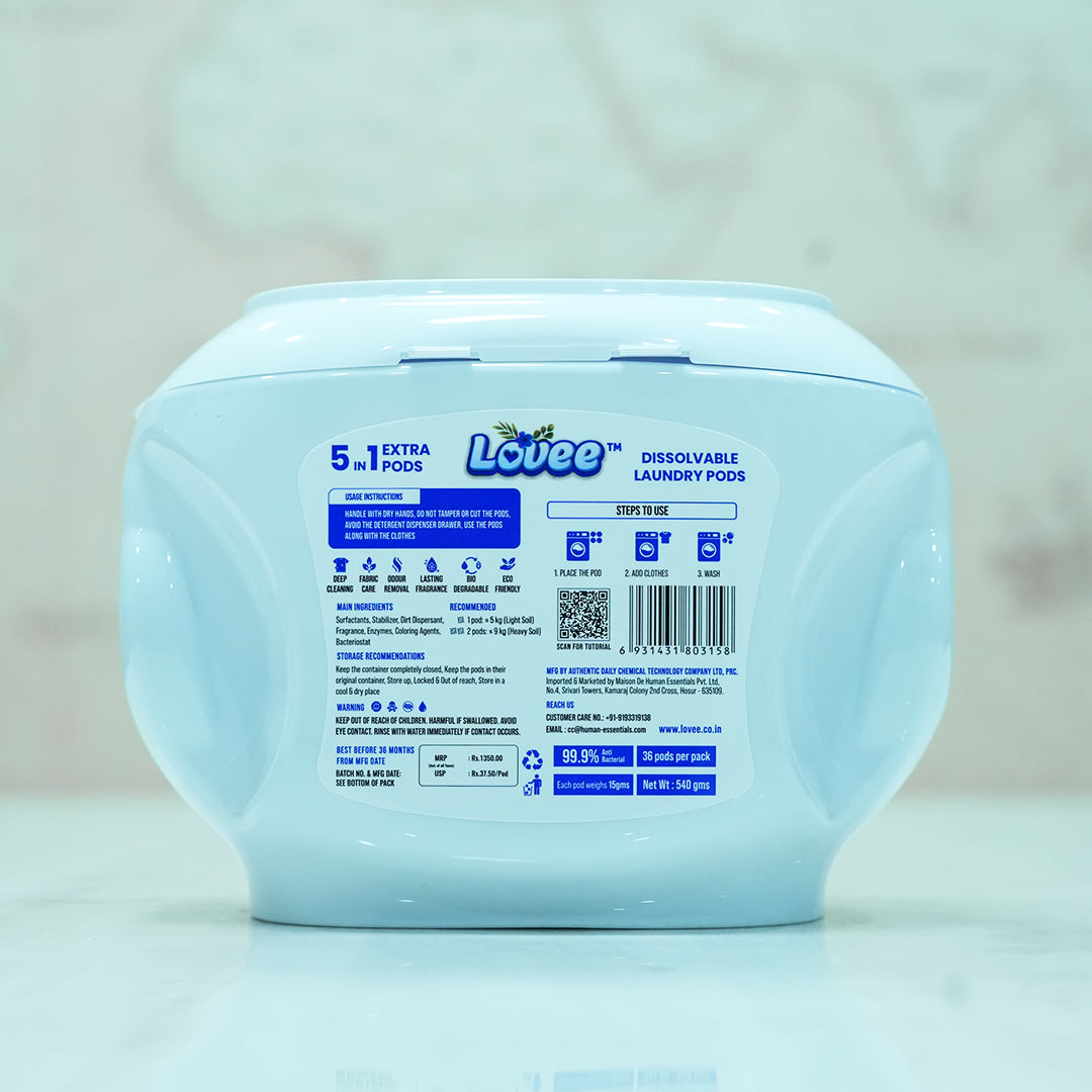 Make laundry effortless with Lovee Dissolvable Laundry Pods, engineered for powerful cleaning performance and long-lasting freshness. Each pod delivers 9× stronger cleaning power, dissolves instantly in both hot and cold water, and leaves no residue behind. Safe for all fabrics and compatible with all washing machines, Lovee Pods provide a mess-free, pre-measured washing experience - just toss, wash, and enjoy spotless softness every time. Perfect for homes, hostels, travel, and everyday laundry needs - clean smarter, not harder.